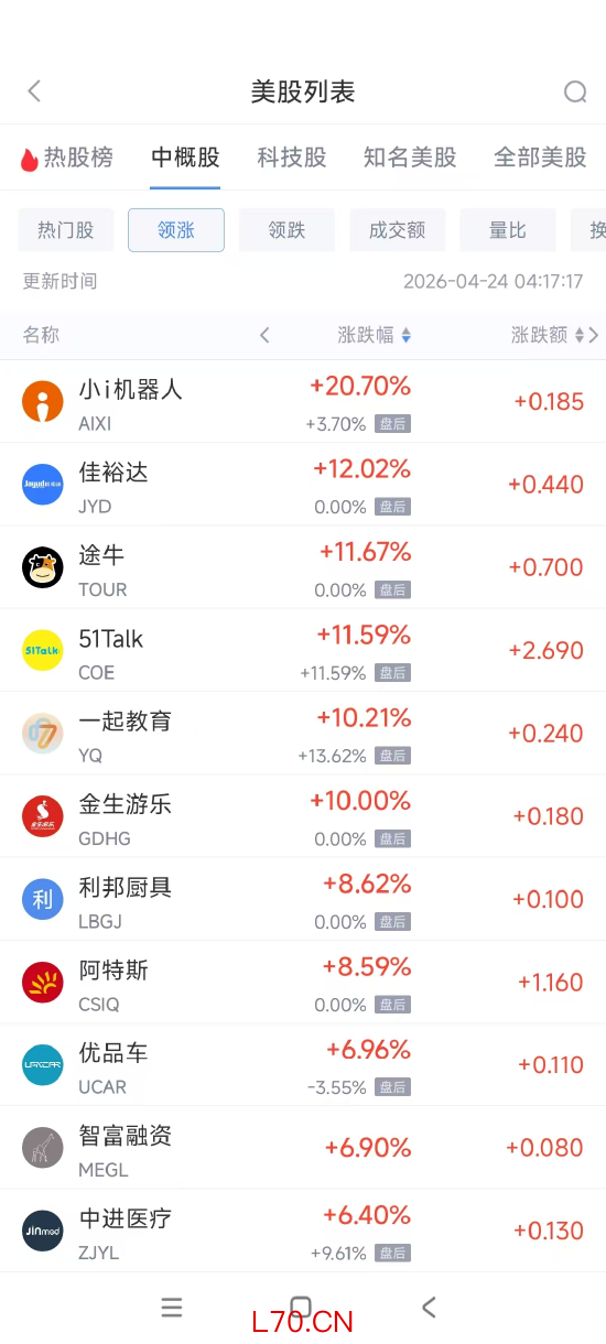 (截图来自新浪财经APP 行情-美股-中概股热门板块)下载新浪财经APP