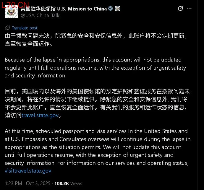 美驻华使领馆官号宣布停更