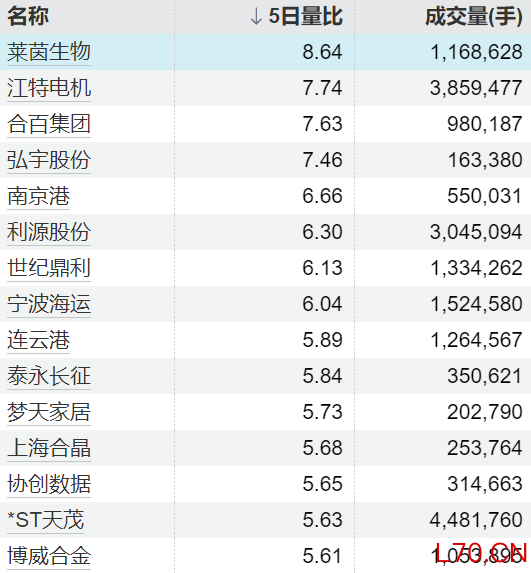 23只个股5日量比超过5倍