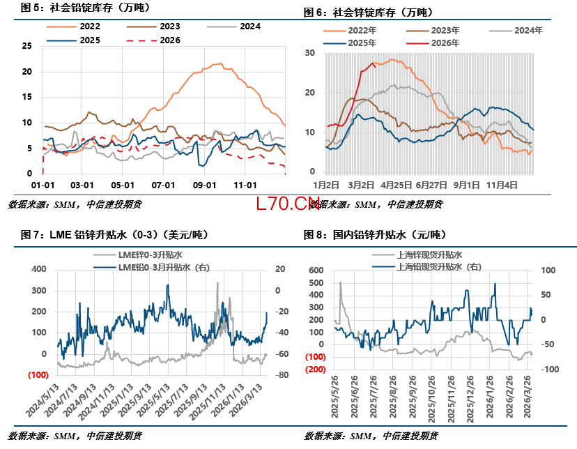 ]article_adlist-->周内锌价先抑后扬。周初锌价上行至整数关口压力明显,叠加中东消息反复上行动力不足;周中中东和谈预期愈发升温,叠加海外锌矿运输担忧,宏观及基本面情绪合力影响下,临近周末锌价站上24000关口,不过现实层面周内仍以累库为主。