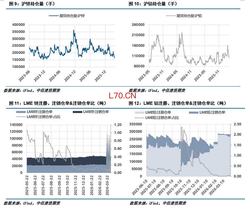 锌:宏观面,中东局势仍有变数,以黎再现冲突,伊朗宣布关闭霍尔木兹海峡,宏观情绪多空交织。原料端,本周内外TC再度下调,预计5月仍有下行空间;内外差价及运输扰动影响下,进口矿仍然难以流入补充。据百川统计,4月下旬产量环比上旬有所回落,但整体维持高位,供应端压力尚存;需求端,初端开工企稳为主,镀锌表现相对较差,天津地区库存高企,现货维持贴水。整体而言,TC下行预期对基本面支撑尚存,宏观指引下锌价高位震荡为主。